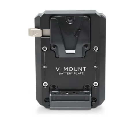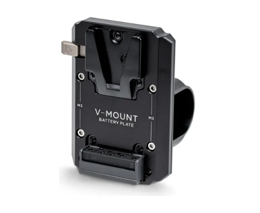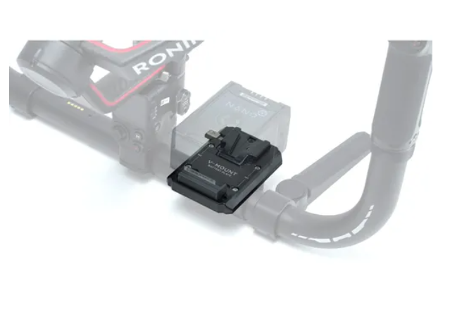 Esta placa de bateria V-Mount é fixada diretamente no anel de empunhadura básico ou avançado do RS 2 e permite que você alimente seu gimbal com baterias V-Mount de maior capacidade sem cabos externos
