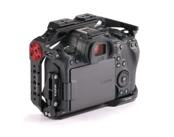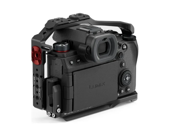 Este suporte completo para câmera oferece proteção para a Panasonic Lumix GH6, ao mesmo tempo em que expande muito as opções para montagem de vários acessórios.