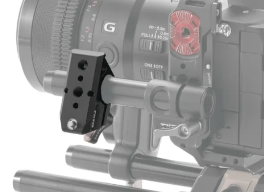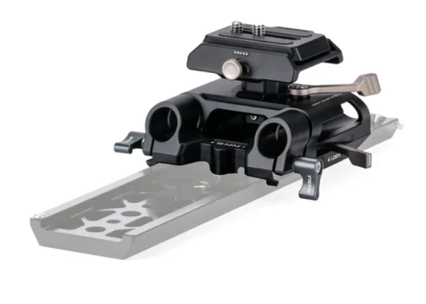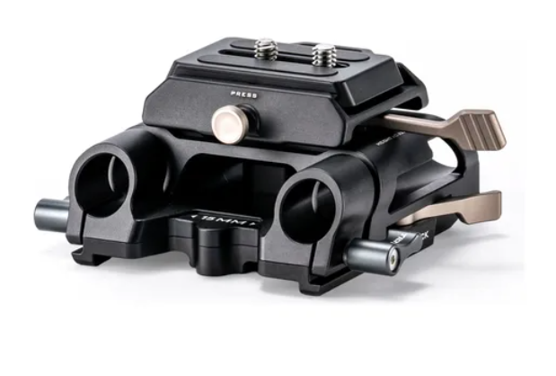 Esta placa de base de 15mm permite que os usuários utilizem hastes de 15mm (não incluídas) para montar vários acessórios, como matte boxes ou sistemas de follow focus.
