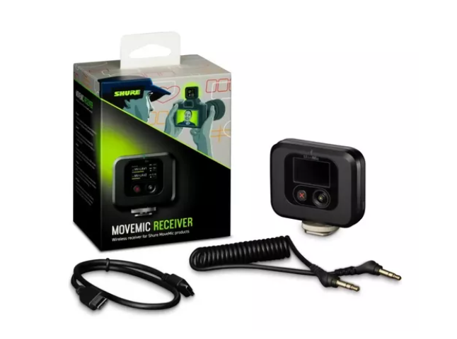 Receptor sem fio para Shure MoveMic O Receptor MoveMic emparelha facilmente com o seu microfone de lapela MoveMic One ou MoveMic Two. Este receptor independente assegura total compatibilidade com câmeras DSLR e mirrorless, computadores e aplicativos móveis de outros desenvolvedores. É só conectar com o cabo USB-C ou de 3,5 mm incluído e contar com a versatilidade e a qualidade de som superior de um sistema de microfone clip-on sem fio revolucionário. Não inclui microfone. Consulte Kit de dois receptores MoveMic para obter o pacote completo.