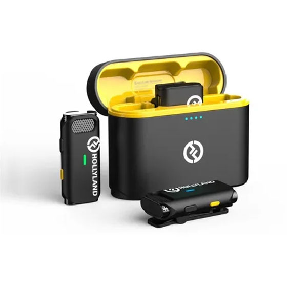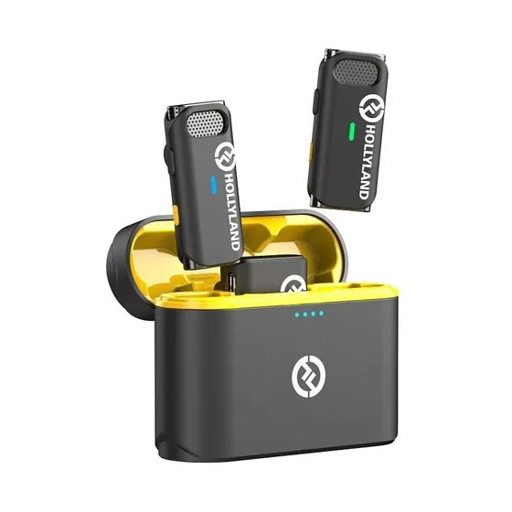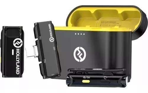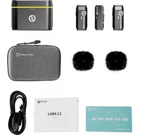 Grave notícias móveis ou aplicativos de criação de conteúdo com até duas pessoas em seu dispositivo móvel USB-C com o sistema de microfone sem fio Black Hollyland LARK C1 DUO. O sistema inclui dois transmissores com microfones omnidirecionais integrados e um receptor de dois canais – tudo em um formato compacto. Um clipe na parte de trás de cada transmissor permite prendê-los na lapela da camisa, enquanto o receptor plug-in se conecta diretamente à porta USB-C do smartphone ou tablet, que também fornece energia.