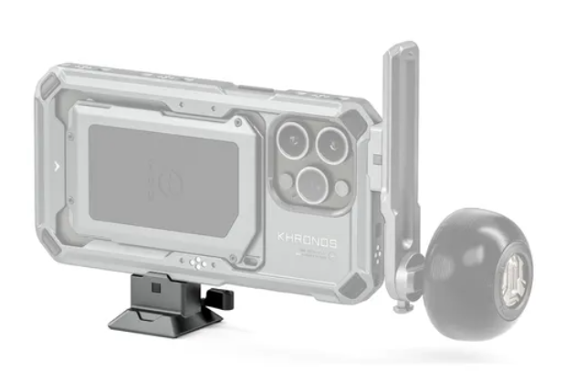 O adaptador de liberação rápida de sapata fria Khronos é a opção perfeita para montar acessórios de câmera tradicionais na capa Khronos para iPhone 15 Pro/Pro Max.